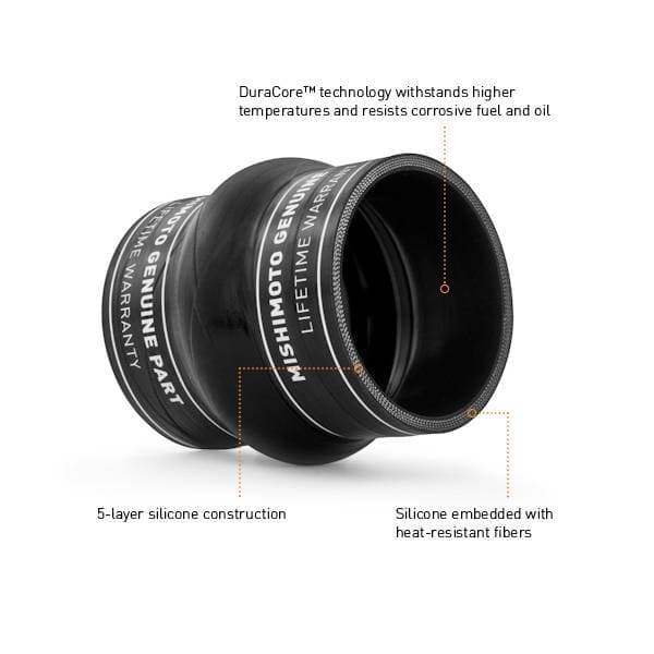 The Mishimoto factory-fit boot kit with DuraCore technology is the perfect upgrade in performance and reliability for your 5.9L Cummins.Mishimoto DuraCore technology is the synthetic material that comprises the innermost layer of all Mishimoto silicone diesel boots.Compared to normal silicone, DuraCore provides superior resistance to heat, pressure, fuel, and oil.This effectively increases the life of our boots by preventing leaks and blowouts.To add even more reliability this kit includes Mishimoto constant-tension T-bolt clamps for accurate and consistent holding power.As with all Mishimoto products, this boot kit is protected by our signature lifetime warranty.